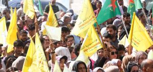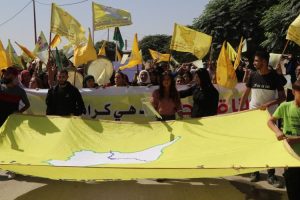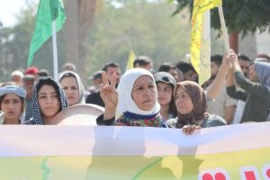 أهالي الرقة يخرجون في مسيرة جماهيرية دعماً لقوات سوريا الديمقراطية