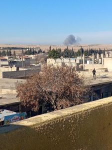 يقصف الاحتلال التركي في هذه اللحظات، وبشكل مكثف، وعبر الطيران الحربي، مناطق عديدة في ريف كوباني الجنوبي، حيث شنت عدة غارات على محيط سد تشرين، إضافة شنه غارات على قرية “جعدة” في الريف الجنوبي كوباني والقريبة من جسر قره قوزاق، منها غارة على مدرسة القرية، ما أدى إلى تدميرها بشكل كامل. كما شن عدة غارات على قرى تابعة لبلدة “صرين”، منها قرية “تينة”، كما استهدف في غارة أخرى محلاً لتصليح السيارات في بلدة “صرين”، وهو مصنع مدني.