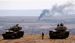 لعبت الدولة التركية دوراً كبيراً في دعم داعش خلال معركة كوباني. كانت الدبابات التركية تجلس على الحدود وتراقب المعارك. وكان مقاتلو داعش، والإمدادات اللوجستية، والأسلحة تتدفق بحرية عبر الحدود في كلا الاتجاهين، وكان المقاتلون الجرحى يتلقون العلاج في المستشفيات التركية ثم يعودون للقتال.